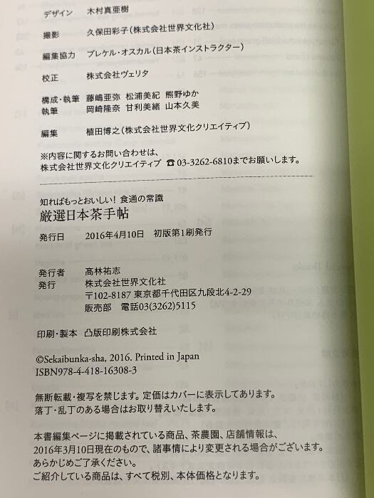 タイトル:厳選日本茶手帖 (知ればもっとおいしい! 食通の常識) 世界文化社 世界文化社