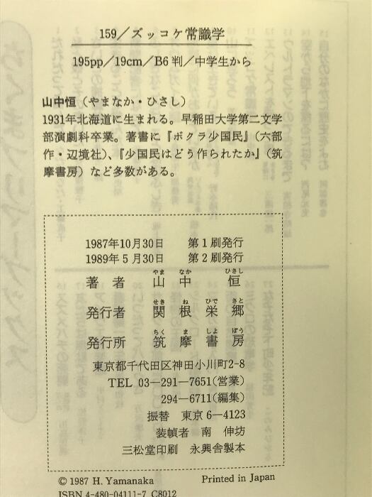 ズッコケ常識学 (ちくまプリマーブックス 11) 筑摩書房 山中 恒
