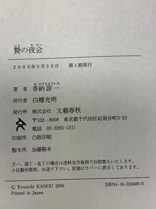 タイトル:贄の夜会 文藝春秋 香納 諒一