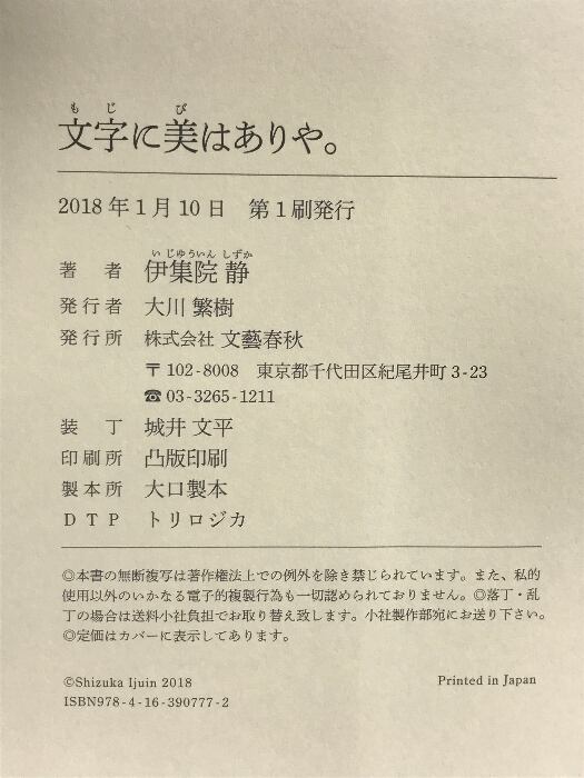 タイトル:文字に美はありや。 文藝春秋 伊集院 静