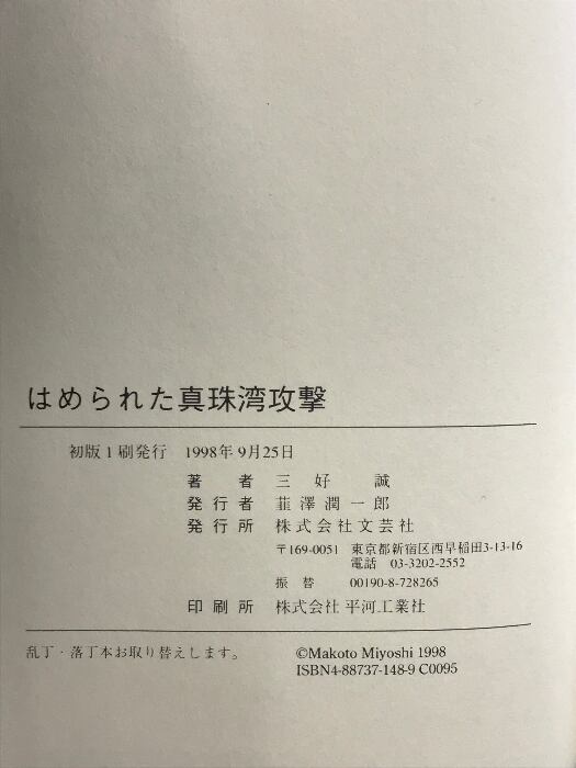 タイトル:はめられた真珠湾攻撃: ルーズベルトに仕組まれた恐るべき伏線 文芸社 三好 誠