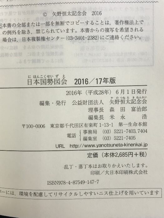 日本国勢図会 2016/17年版: 日本がわかるデータブック 矢野恒太記念会 矢野恒太記念会