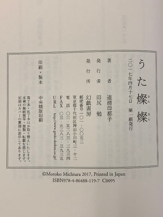 サイン本 うた燦燦 幻戯書房 道浦母都子