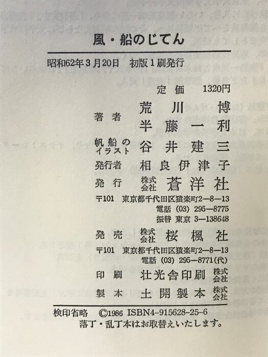 タイトル:風・船のじてん 蒼洋社 半藤一利