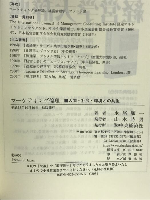 タイトル:マーケティング倫理: 人間・社会・環境との共生 中央経済グループパブリッシング 水尾 順一