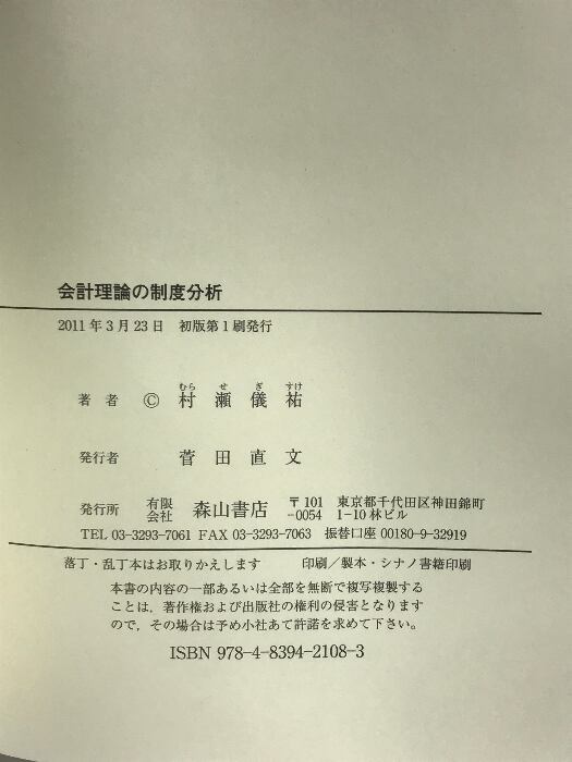 タイトル:会計理論の制度分析 森山書店 村瀬 儀祐