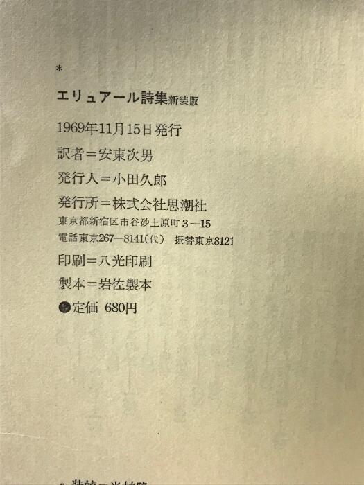 エリュアール詩集―Choix de poemes 1917-1952 思潮社 ポール・エリュアール 安藤次男:訳