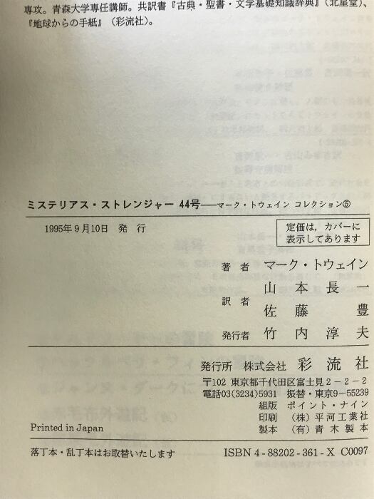 タイトル:ミステリアス・ストレンジャー44号 マーク・トウェインコレクション (5) 彩流社 マーク・トウェイン