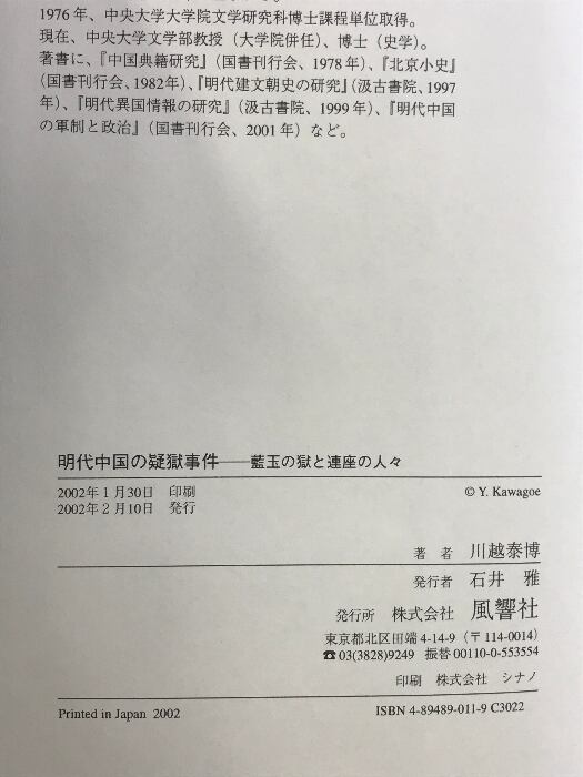 タイトル:明代中国の疑獄事件: 藍玉の獄と連座の人々 風響社 川越 泰博