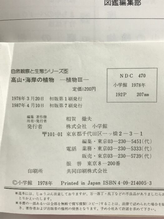 タイトル:高山・海岸の植物: 公園・街路樹 (自然観察と生態シリーズ 5) 小学館 牧野 晩成