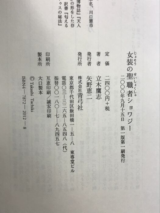タイトル:女装の聖職者ショワジー 青弓社 立木 鷹志