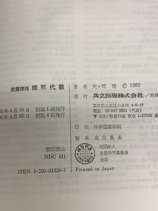 教養課程 線形代数 共立出版 矢ケ部 巌