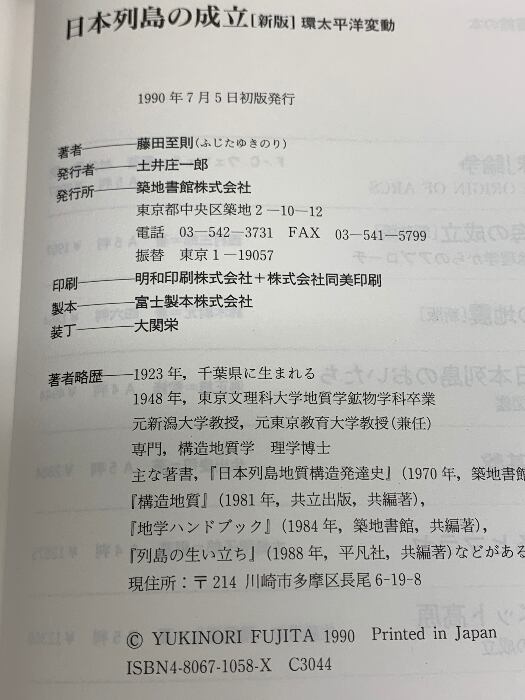 タイトル:日本列島の成立 新版: 環太平洋変動 築地書館 藤田 至則