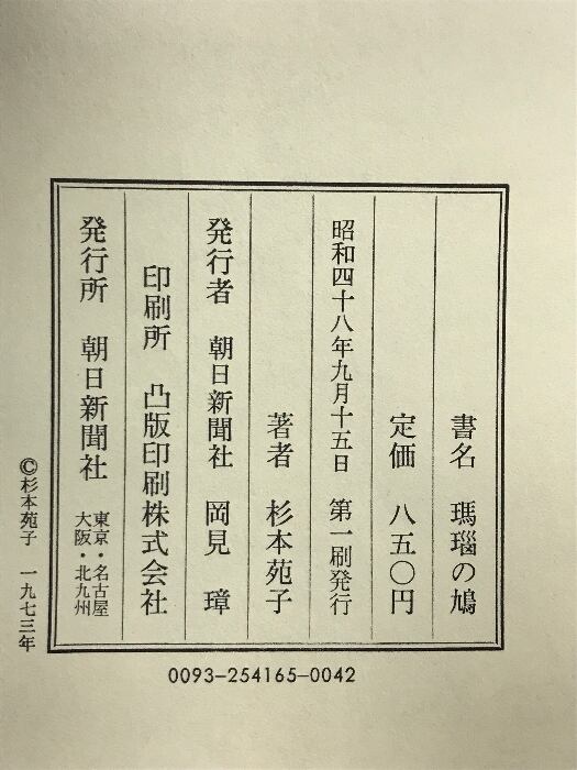 タイトル:瑪瑙の鳩 朝日新聞社 杉本苑子