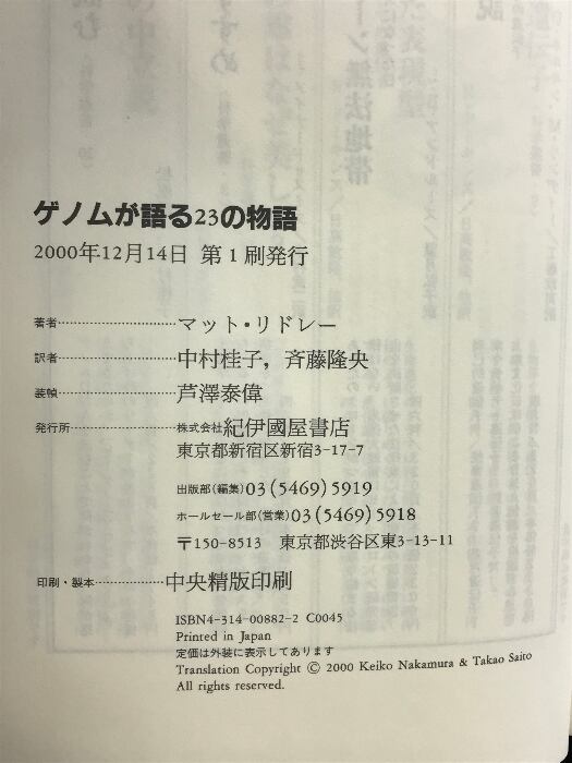 ゲノムが語る23の物語 紀伊國屋書店 マット リドレー