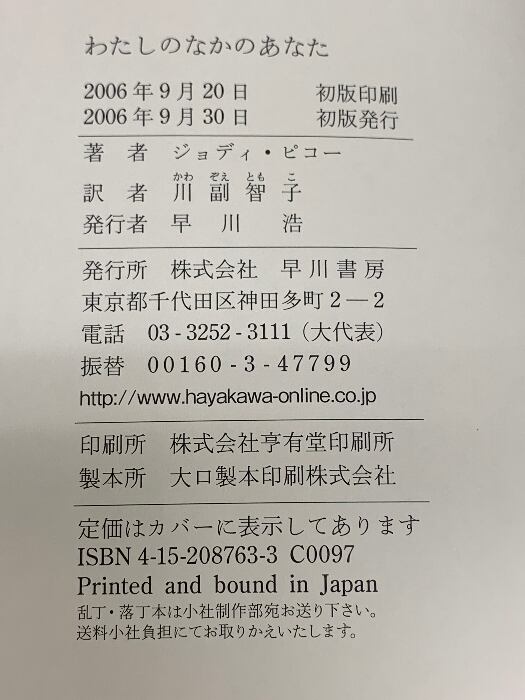 わたしのなかのあなた (ハヤカワ・ノヴェルズ) 早川書房 ジョディ ピコー