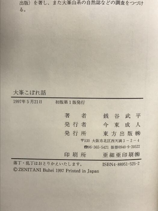 タイトル:大峯こぼれ話 東方出版 銭谷 武平