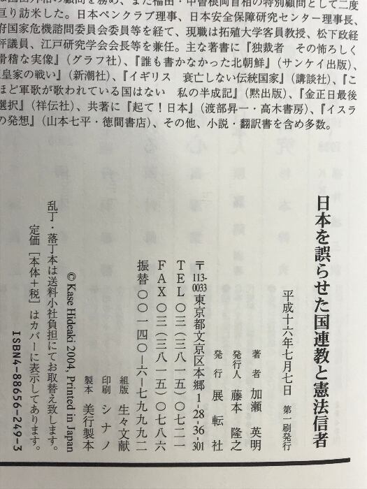 タイトル:日本を誤らせた国連教と憲法信者 展転社 加瀬 英明