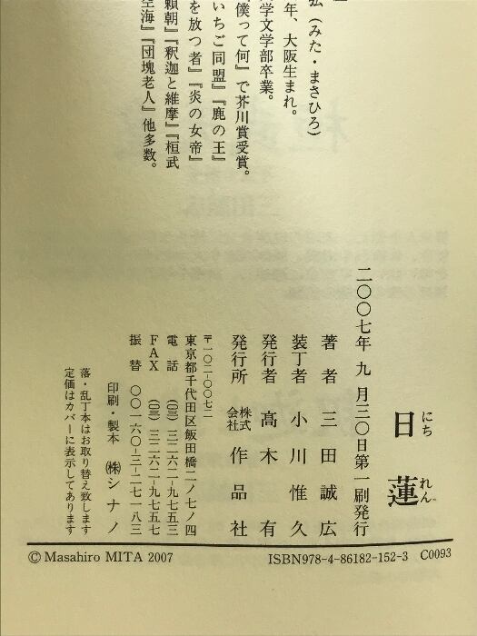 タイトル:日蓮 作品社 三田誠広
