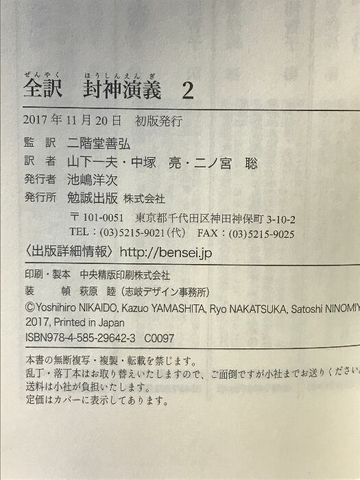 タイトル:全訳 封神演義(2) 勉誠出版 二階堂善弘