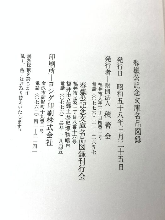 タイトル:春嶽公記念文庫名品図録 正続 全2冊 セット 積善会 骨董 古美術 刀剣 郷土資料