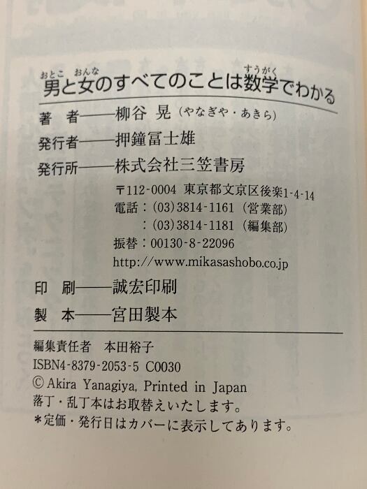 タイトル:男と女のすべてのことは数学でわかる 三笠書房 柳谷 晃