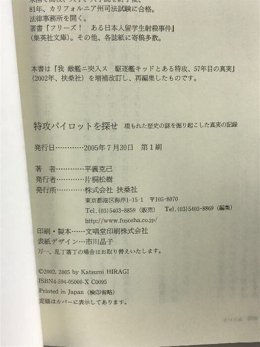 タイトル:特攻パイロットを探せ: 埋もれた歴史の謎を掘り起こした真実の記録 扶桑社 平義 克己