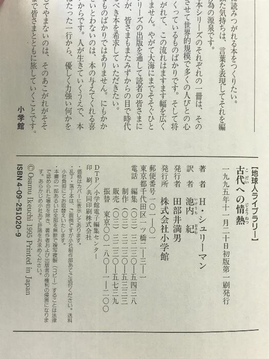タイトル:古代への情熱 (地球人ライブラリー 20) 小学館 H. シュリーマン
