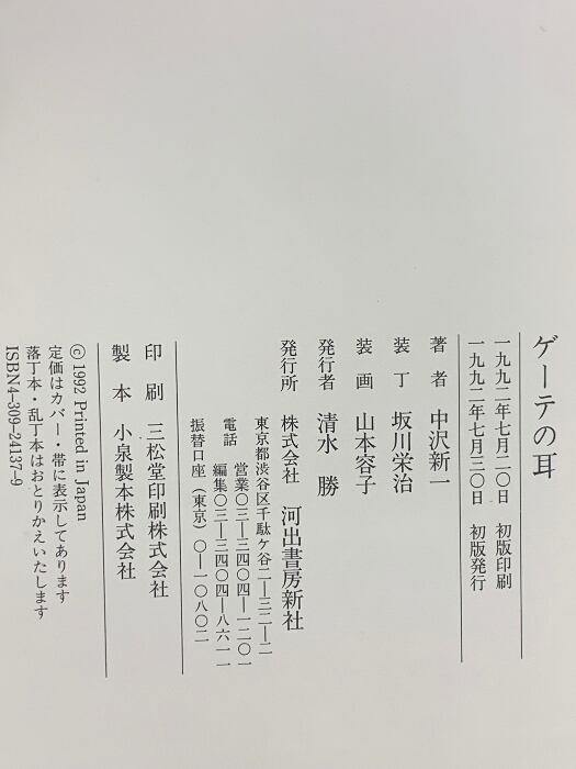 タイトル:ゲーテの耳 河出書房新社 中沢 新一