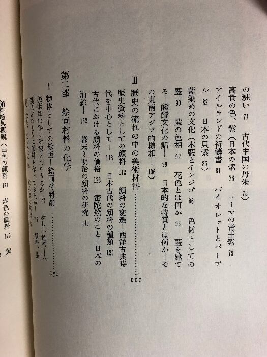 本書は、東京芸術大学で保存科学教室を主宰する著者が、化学者の眼で人類と色との関わり、色にまつわる民俗、絵具の歴史を語り、美術材料、とくに顔料や藍の化学的性格を概説し、さらに文化財保存の基本問題を化学者の立場から問いかけた、ユニークな色彩文化論である。