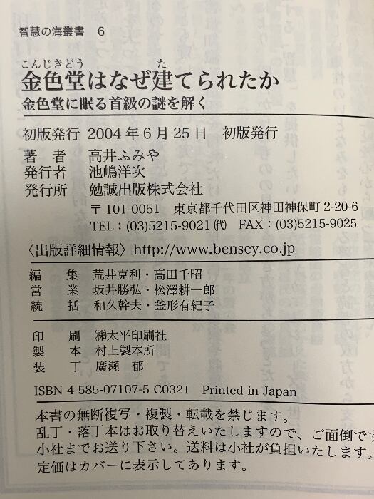 タイトル:金色堂はなぜ建てられたか―金色堂に眠る首級の謎を解く (智慧の海叢書) 勉誠出版 高井ふみや