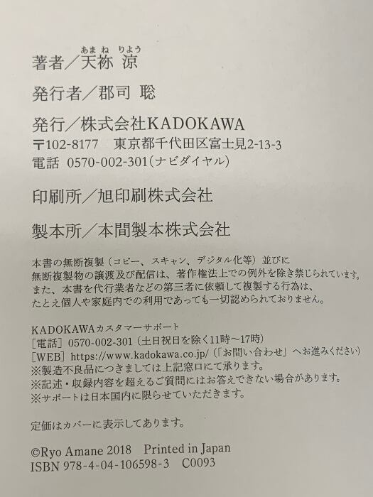 タイトル:罪びとの手 KADOKAWA 天祢 涼