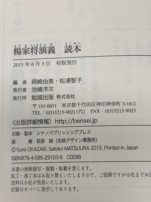 タイトル:楊家将演義 読本 勉誠出版 岡崎由美