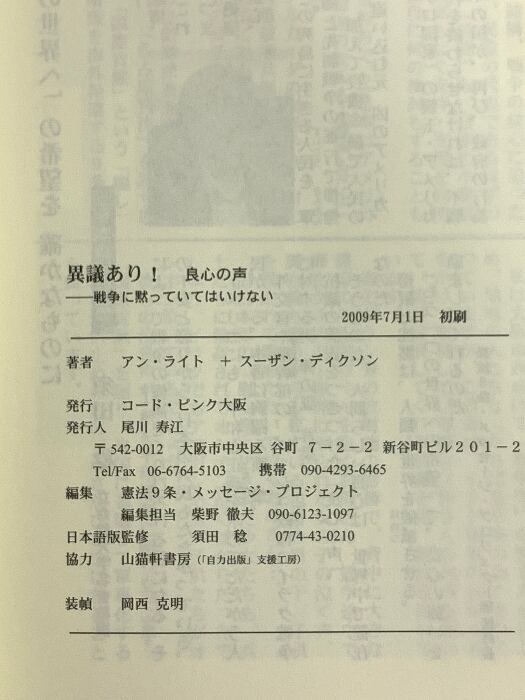 タイトル:異議あり! DESSENT 戦争に黙っていてはいけない。 アン・ライトスーザン・ディクソン 山猫軒書房