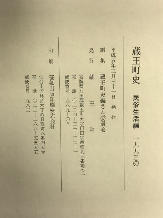 タイトル:蔵王町史(民俗生活編)宮城県 発行:蔵王町 平成5年