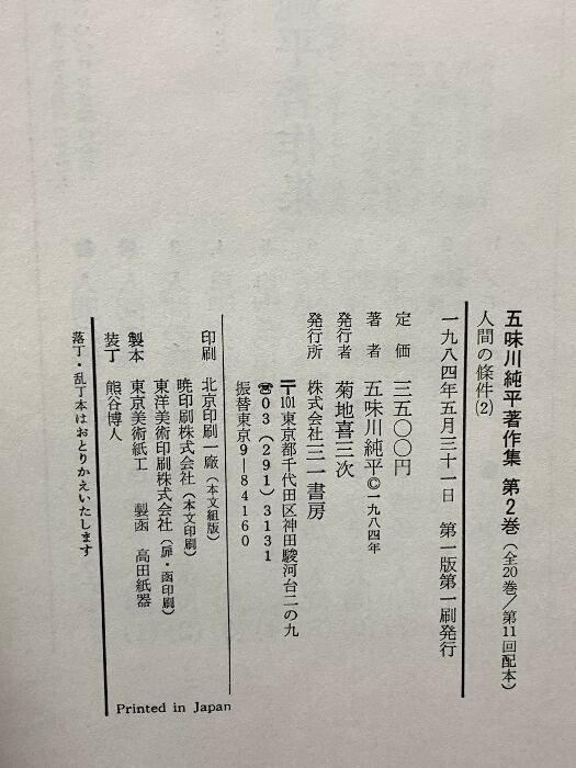 タイトル:五味川純平著作集 第2巻 人間の条件 2 三一書房 五味川純平