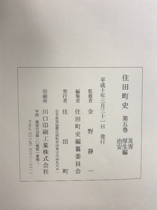 タイトル:住田町史(第5巻・災害/厚生編/治安)岩手県 発行:平成10年