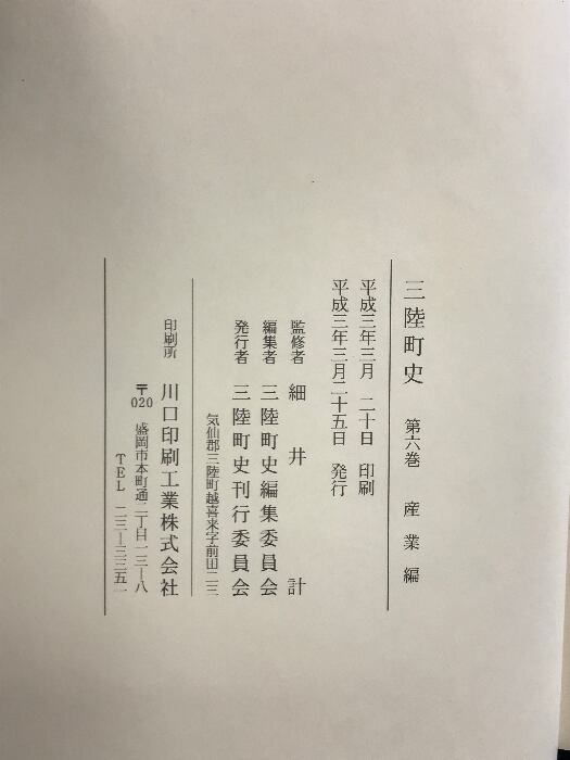 タイトル:三陸町史(第6巻/産業編)宮城県 発行:三陸町史刊行委員会 平成3年