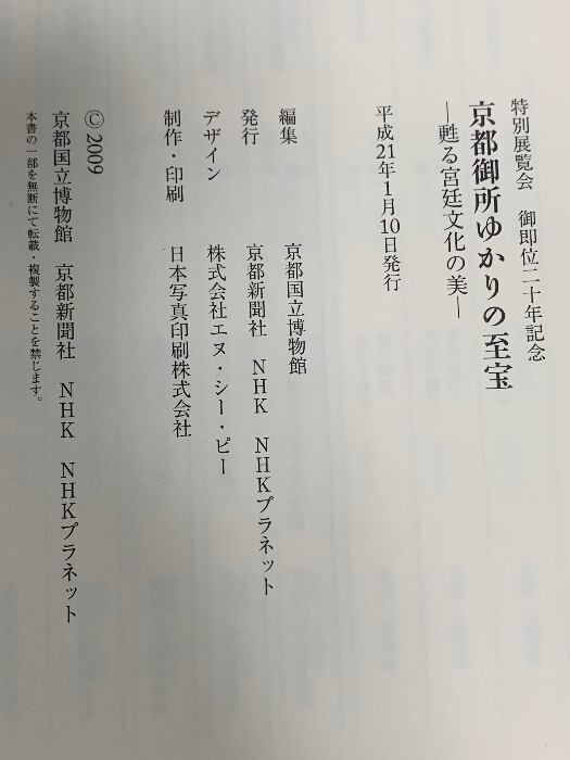 図録 京都御所ゆかりの至宝 甦る宮廷文化の美 京都国立博物館 2009
