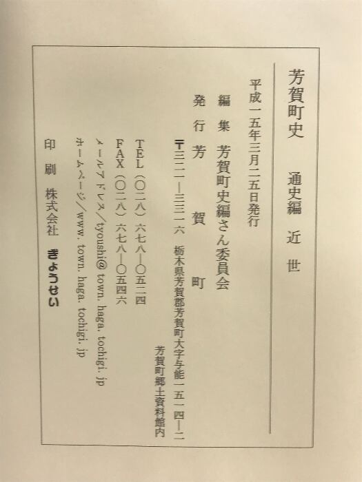 芳賀町史(通史編(近世)・年表編/全2冊セット)栃木県 発行:芳賀町 平成15年・平成17年
