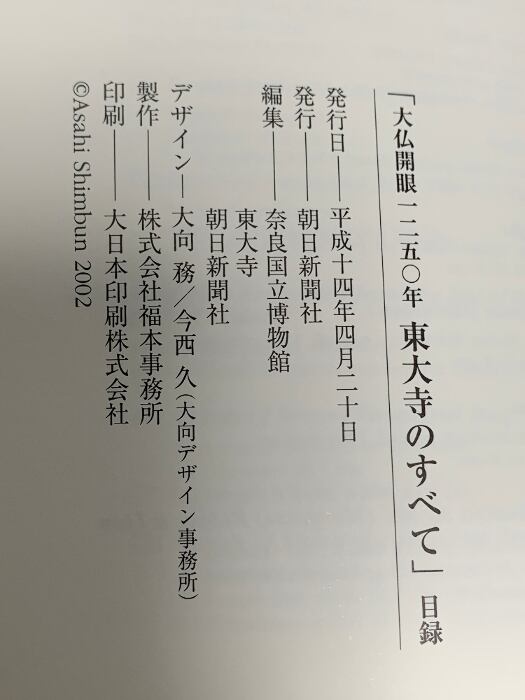 タイトル:東大寺のすべて 大仏開眼1250年 朝日新聞社 2002