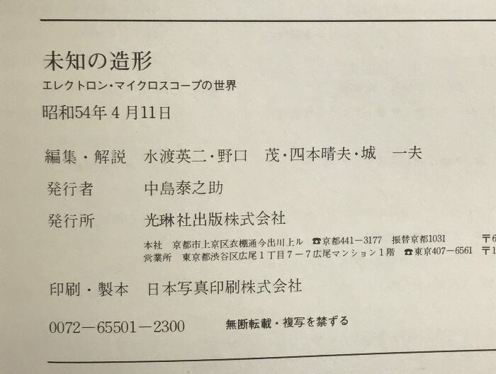 タイトル:未知の造形 エレクトン・マイクロスコープの世界 光琳社 編集解説:水渡英二他 昭和54年
