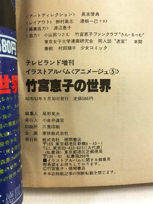 竹宮恵子の世界(テレビランド増刊イラストアルバムアニメージュ5)徳間書店 昭和53年