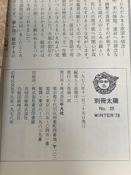 別冊太陽 日本のこころ25 能 平凡社 1978