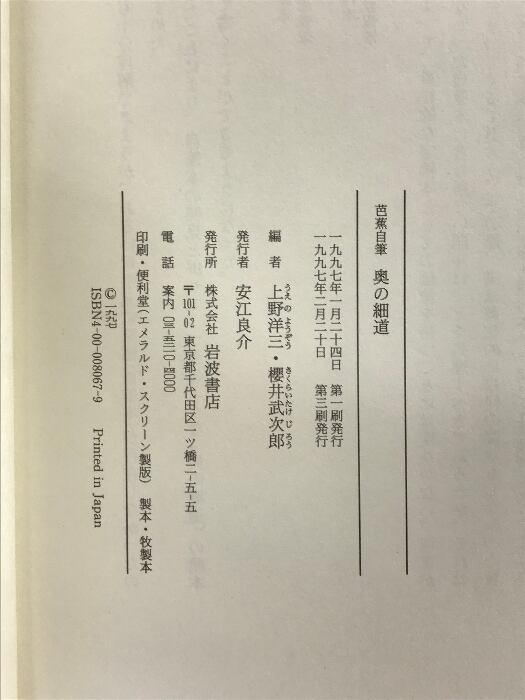 芭蕉自筆 『奥の細道』岩波書店 編:上野洋三・櫻井武次郎 1997年
