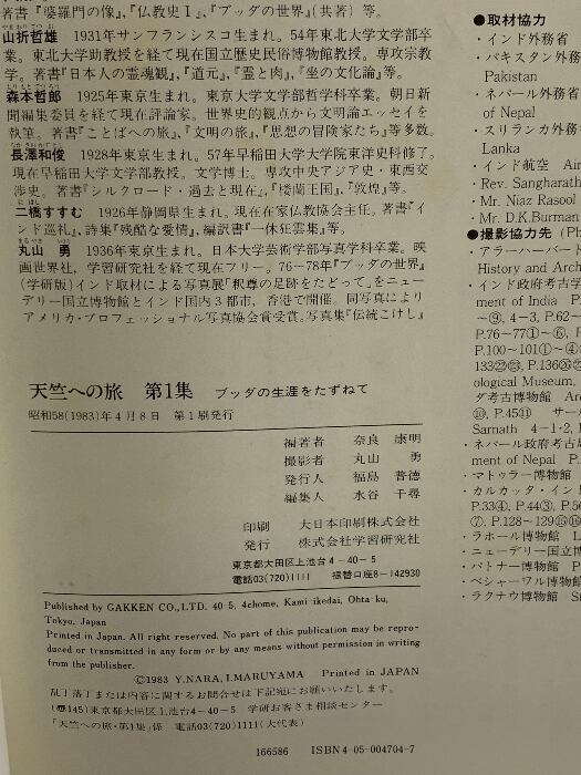 タイトル:天竺への旅 第1集 ブッタの生涯をたずねて 奈良康明 初版 1983 株式会社学習研究所