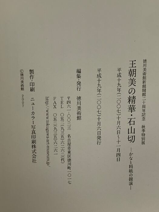 徳川美術館新館開館二十周年記念 秋季特別展 王朝美の精華・石山切 -かなと料紙の競演- 解説 資料編 2007 徳川美術館