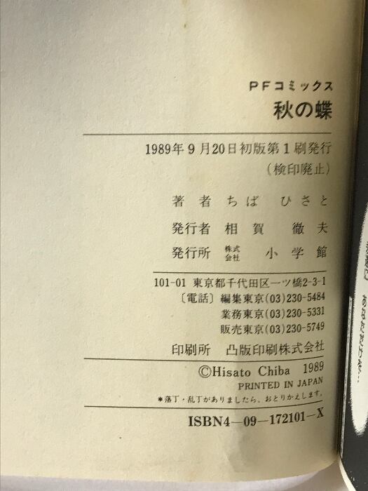 秋の蝶 (プチフラワーコミックス) 小学館 ちば ひさと