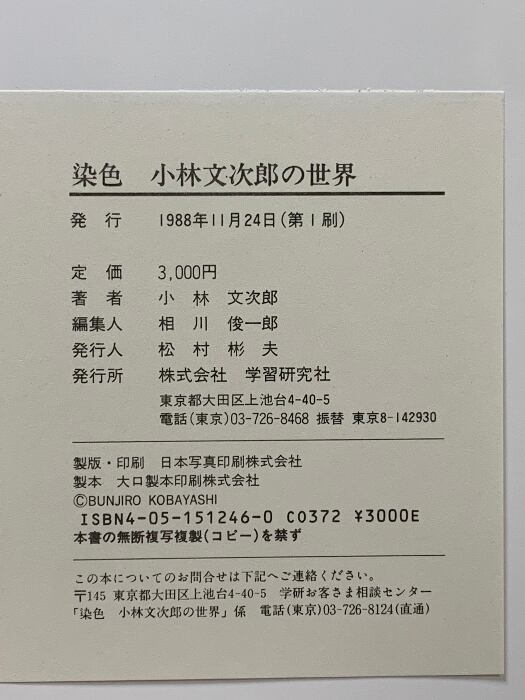 サイン本 図録 染色 小林文次郎の世界 1988 初版 学習研究社