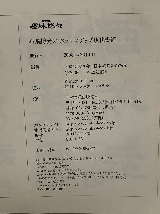 NHK 趣味悠々 石飛博光の ステップアップ現代書道 2008 2月~3月 日本放送出版協会